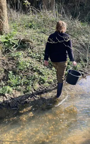 L’appel de l’argile, la cueillette de terre dans la rivière, derrière l’atelier de poterie,
