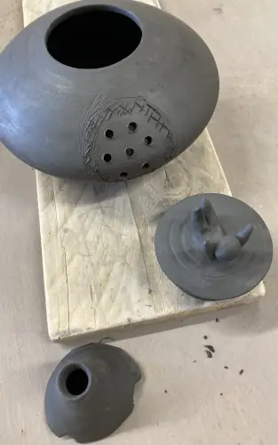 Pour celles et ceux qui s’y essaieront en cours ou stage céramique, il s’agira, avant toutes répétitions de gestes techniques, de rester à l’écoute des mains sur la terre qui tourne, à l’écoute de son rythme et de sa respiration : le souffle qui centre.
